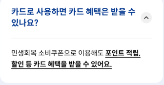 또 카드로 사용하면 카드혜택을 받을 수 있는지, 카드실적이 가능한지, 소비쿠폰 사용방법은